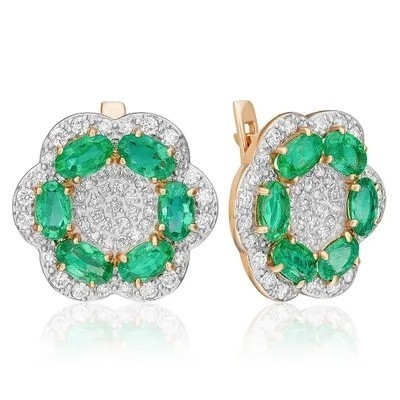 первая страница > Ювелирные изделия > PLATINA Серьги с английским замком из красного золота 585 пробы c изумрудами и бриллиантами